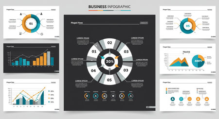 Collection of modern data visualizations featuring various charts and graphs ideal for enhancing business presentations and delivering key insights effectively.