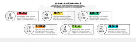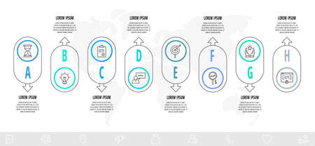 Infographics rectangle with eight steps, icons. Vector template used for diagram, web, banner, workflow layout, presentations, flowchart, info graph, timeline, content, levels, processes diagram