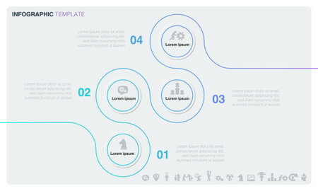 Futuristic Infographic template with 4 options (steps) and place for text. Turquoise circles template design for report, banner, workflow, business presentation. Editable vector EPS 10 illustration.