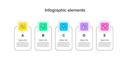 Business process chart infographics with 5 step squares. Rectangular corporate workflow graphic elements. Company flowchart presentation slide template. Vector info graphic design.