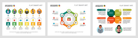 Data visualization and segments design set vectors with colorful shapes. Modern graph chart infographic design collection for office presentations. Business infographic flow chart and pie chart bundle