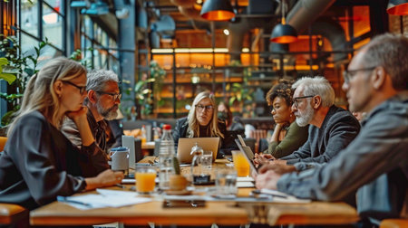 Diverse group of professionals engaged in a collaborative discussion, brainstorming ideas during a meeting.
