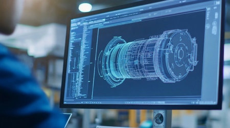 Engineer Doing 3D CAD Model Design On Computer At Factory