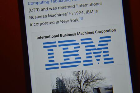 KIEV, UKRAINE - DECEMBER 30, 2019: Logos of multinational companies on the smartphone screen according to version the S&P 100