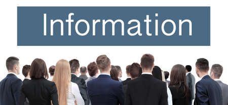 little white cubes with black letters of word info on white background with miniature figurines of businessmen defocused