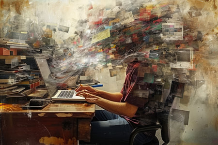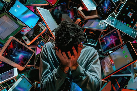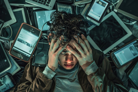 Person Overwhelmed by Excessive Technology and Electronic Devices