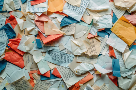 An abstract background featuring a pile of handwritten essays, their pages filled with ideas and arguments