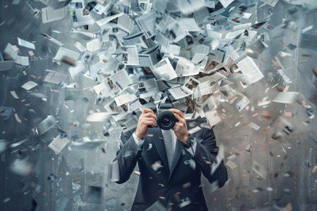 Professional Drowning at Work Amidst Piles of Documents. Concept Workload Management, Organizational Skills, Time Management, Stress Management, Productivity