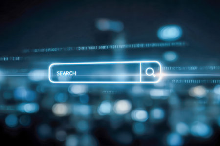 Search technology, search engine optimization, man's hand using laptop to search information, using search bar function on your website. SEO.
