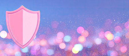 Pink shield graphic is presented against a softly focused backdrop of vibrant bokeh lights, featuring various shades of pink, purple, and yellow. The lighting effect and gentle gradation create a dreamy and appealing aesthetic. The shield itself is a distinct, solid pink shape.