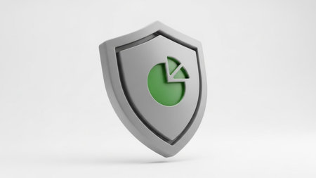 The image depicts a metallic shield with a green pie chart symbol in the center. The shield represents protection and security, while the pie chart symbolizes data and information. The combination of these elements suggests the importance of safeguarding data and ensuring its security.