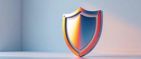 This striking 3D illustration features a shield surrounded by glowing particles, symbolizing security and protection in a digital world.