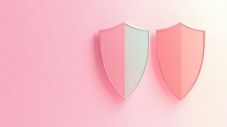 A minimal design of three pink shields, set on a calm pastel surface, signifying protection and encryption.