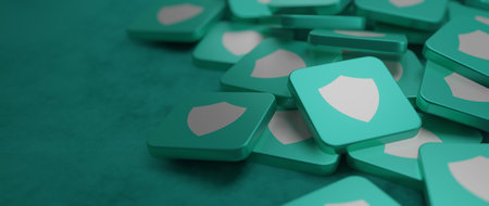 Cyber security concept with shield symbol, privacy protection and computer safety icon. Futuristic abstract 3d rendering illustration.