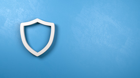 White Shield 3D Symbol Shape on a Blue Plastered Wall with Copy Space 3D Illustration