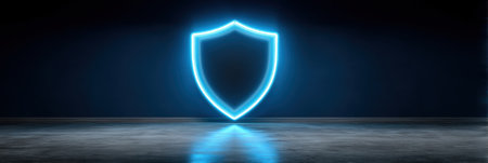 Neon shield data security glowing blue reflection modern protection