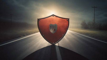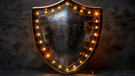AI Generated. Glowing Metal Shield Security Protection Dark Background