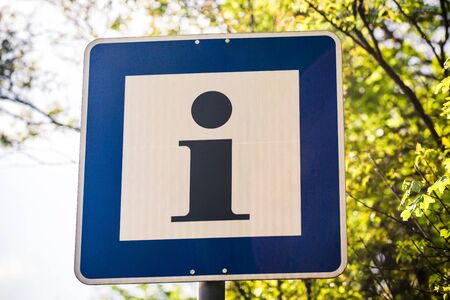 information sign in the tourist area of the city on the background of a brick wall. Concept: urban infrastructure.