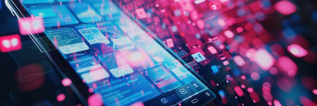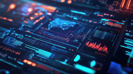 Analyzing live data on futuristic digital interface dashboard