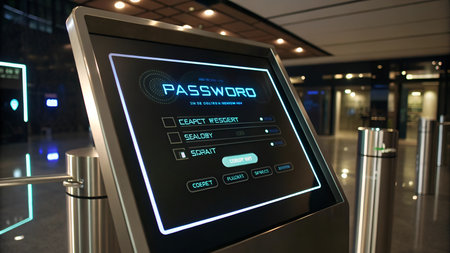 A sleek id scanner displaying scan id in a contemporary office lobby setting