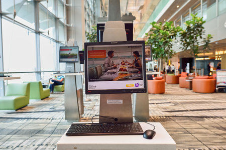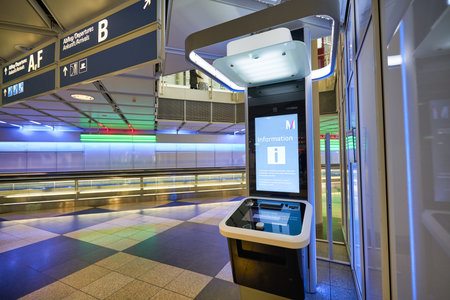 AMSTERDAM, NETHERLANDS - NOVEMBER 17, 2015: self check-in kiosk in Amsterdam Airport Schiphol. Amsterdam Airport Schiphol is the main international airport of the Netherlands.