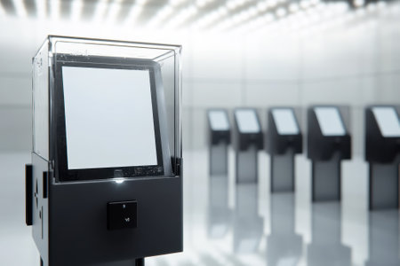 Interactive kiosks modern office technology display urban environment futuristic viewpoint