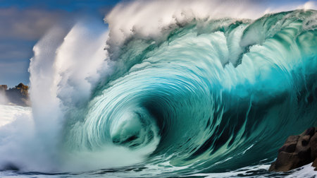 A stunning close-up of a powerful ocean wave captures the dynamic beauty of nature, showcasing vibrant turquoise colors and frothy white spray. This image evokes a sense of awe and tranquility, inviting viewers to immerse themselves in the serene yet powerful essence of the sea.