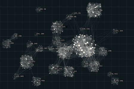 Big data complexity visual representation. Cluster analysis visualization. Advanced analytics. Beauty of data graphic abstract background.