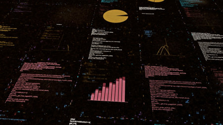 A captivating display of digital data visualization and analytics in a contemporary office space, showcasing vibrant graphs and interactive screens that engage viewers.