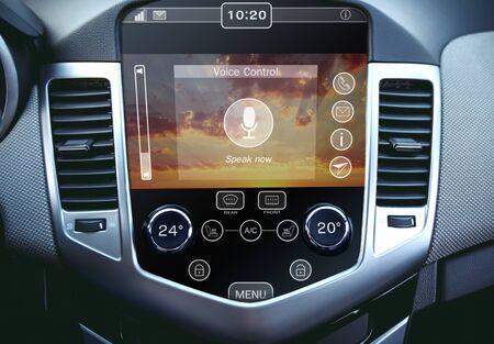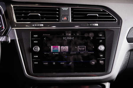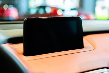 Modern car media display in the interior of the car. Touchscreen monitor on the dashboard of the modern car.