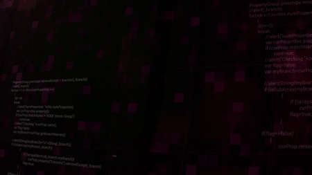 Abstract background with colorful surface divided into cells with self written code. Animation. Technologic IT backdrop, seamless loop.