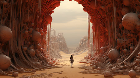 Surreal and disorienting landscape with fluid time space and shifting realities background