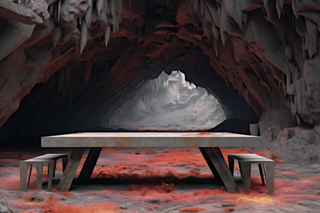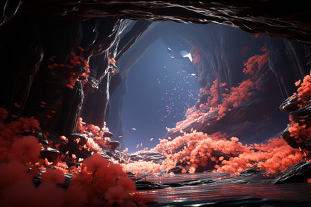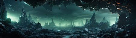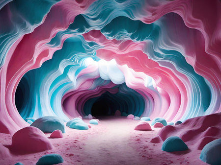 The design of a fantastic cave, in a realistic and futuristic style. Graphic design work, concept illustration, and realistic cartoon style scene design.
