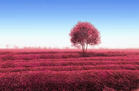 Beautiful and colorful fantasy landscape in an asian purple infrared photo style