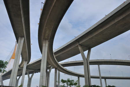 Bhumibol Bridge or Bridge of Industrial Rings is concrete highway overpass and cross the Chao Phraya River, Thailand.