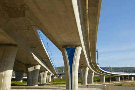 highway bridge, elevated freeway isolated on blue sky