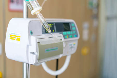 Infusion pump in the hospital room. Concept of healthcare and medical.