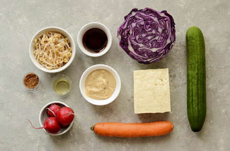 Onion, beet, pepper, garlic, carrot, cabbage ready to prepare salad. Detox and diet food.