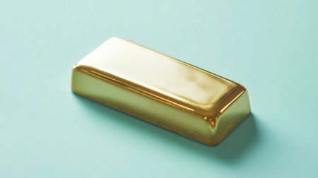 This image features a gleaming gold ingot on a softly colored backdrop, showcasing its shine and luxurious allure. Perfect for themes of wealth and elegance.