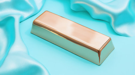 A captivating image of a gold bar resting on a vibrant turquoise surface, illuminated with soft light, showcasing a modern and minimalist aesthetic.