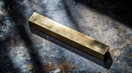 A captivating golden bar rests on a textured surface, showcasing fine details and reflections, symbolizing luxury, wealth, and artistry in design.