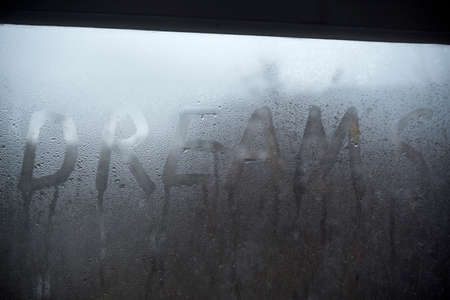 Misted glass with DREAMS lettering. Motivational lettering on the window.