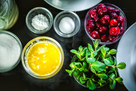 Culinary Flat Lay of ingredients, utensils and dishes arranged in a flat arrangement.