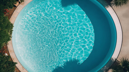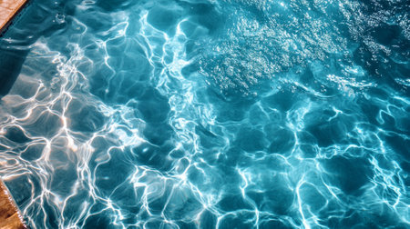 Sunshine through the clear water background. Swimming pool top view background. Relaxation in the summertime. Hotel and resort accommodation.