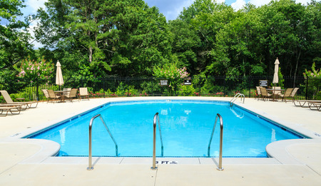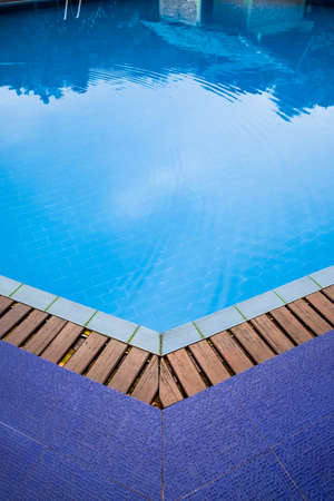 Swimming pool with clear blue water. Summer vacation concept. Copy space.