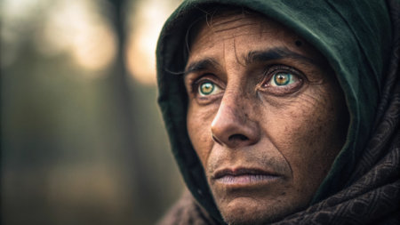 Featuring a subject with wide expressive eyes that appear to gaze into the soul of the viewer. Theres an unmistakable glint of hope amidst an underlying sadness. The natural.
