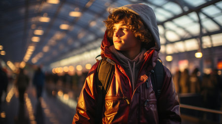 Independent young traveler at the station, unaccompanied by parents
