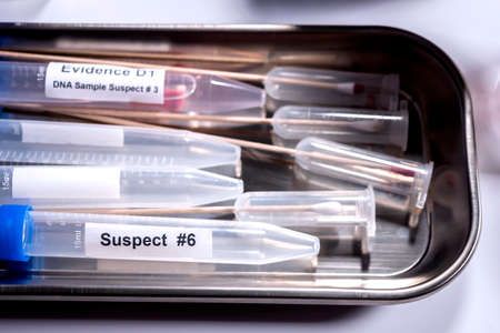 Detail of DNA sampling tubes in Laboratory forensic equipment, conceptual image
