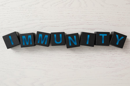 Cube Wood Square with Copy Space Isolated on a black wood table Background.