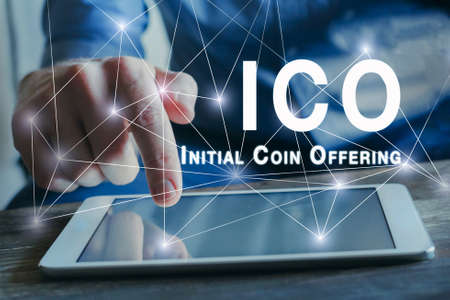 ICO concept, initial coin offering, digital money crypto currency